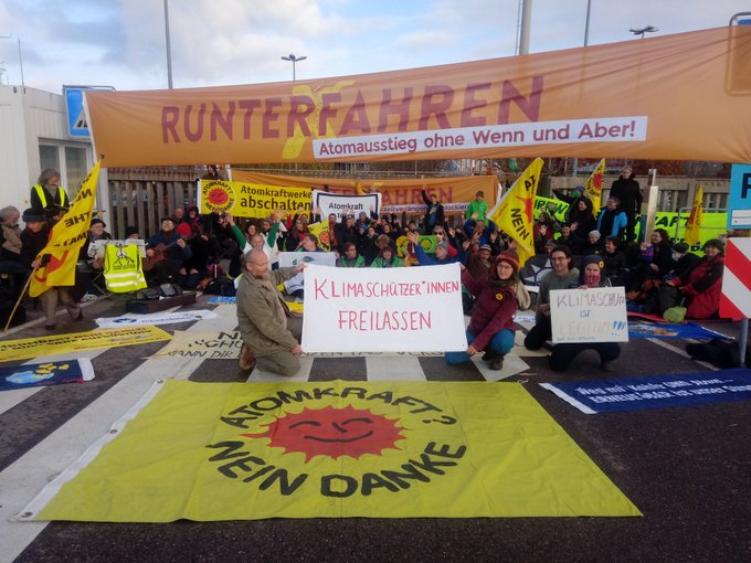 Wir senden von unserer AKW-Blockade viele solidarische Grüße an die Gefangenen der @AufstandLastGen und der @Feuerwehr_Klima und an alle von Repression betroffenen Klimaaktivist*innen weltweit. Danke für euren Mut, wir denken an euch. Klimaschützer*innen freilassen! #Runterfahren