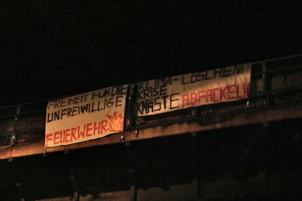 Heibo: Only a government that holds its power through a monopoly of violence would perform these cruelties and call it „justice“. The Involunteer firefighters dont belong behind bars- nobody does! Solidarity to @Feuerwehr_Klima #freethemall