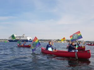 Kiel: Heute waren wir beim globalen #Klimastreik zusammen mit @fff_kiel auf dem Wasser in der Förde! Neben unserem Transpi hatten wir noch ein Plakat dabei, auf welchem wir uns mit den drei seit Montag eingesperrten Klimagerechtigkeitsaktivist*innen in Brandenburg solidarisieren.